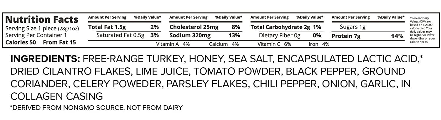 All Natural Cilantro Lime Turkey Meat Sticks - Pack of 20