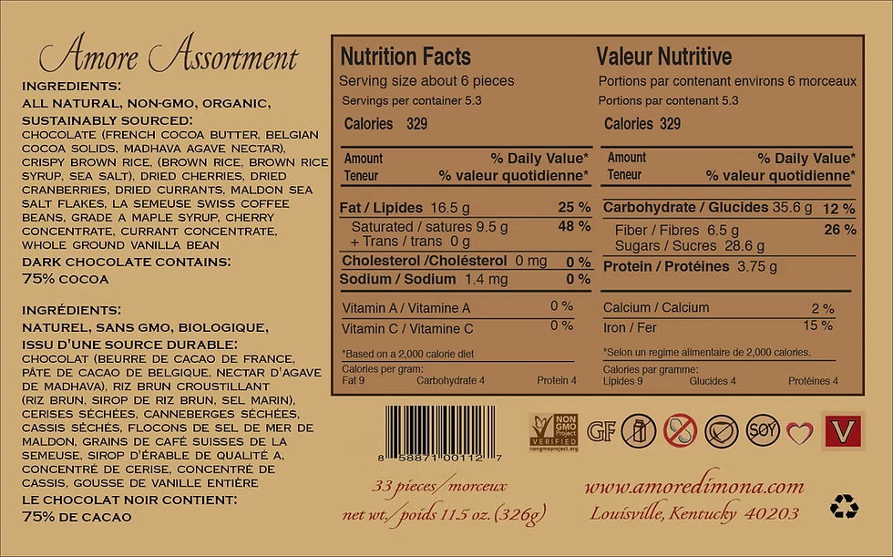 Ganache: chocolate, grade A maple syrup, black currant concentrate.