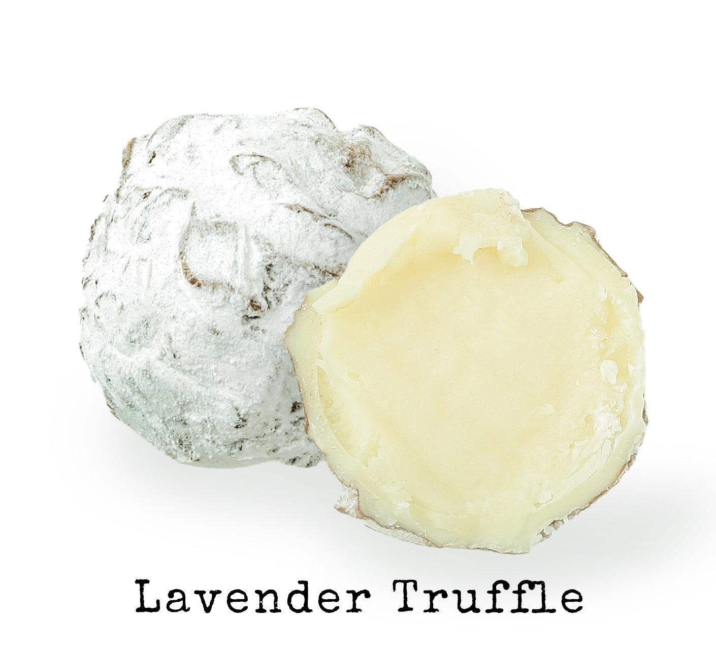 - Lavender Truffle (x1): white chocolate lavender ganache in white chocolate, dusted with cocoa powder & powdered sugar