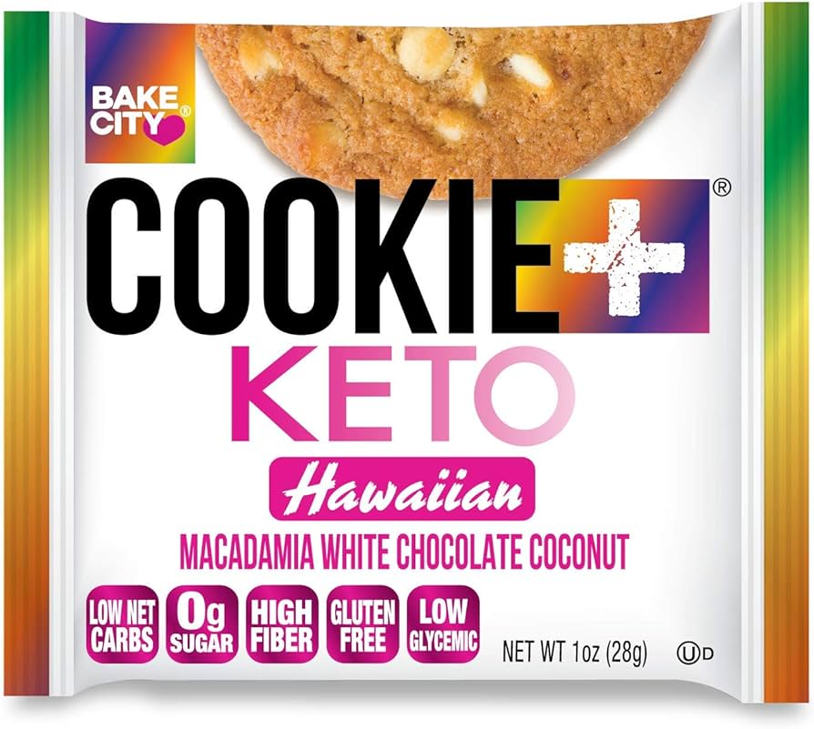 Bake City Cookie Plus Keto | Hawaiian Cookies - Gluten Free, Non-GMO, 0g Sugar, Only 1.5g Net Carbs, Good Fats, 5g Protein, Kosher, No Artificial Flavors - Pack of 12