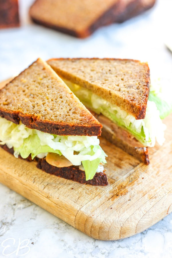 Water, resistant tapioca starch, tapioca starch, sourdough (water, brown rice flour), coconut oil, potato starch, honey, tapioca fiber, amaranth flour, quinoa flour, psyllium husk, egg white powder, apple cider vinegar, sea salt, almond flour, yeast, nitro-milled white chia flour