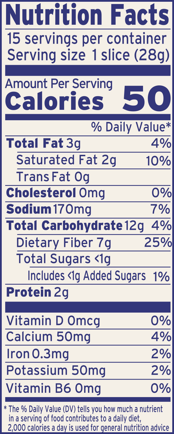 Water, Resistant Tapioca Starch, Tapioca Starch, Coconut Oil, Potato Starch, Honey, Tapioca Fiber, Coconut Fiber, Flax Meal, Psyllium Husk, Almond Flour, Apple Cider Vinegar, Egg White Powder, Sea Salt, Chickpea Flour, Yeast