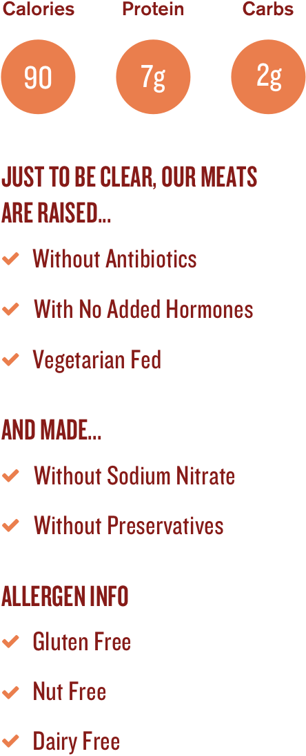 Deep, medium spicy taste of true BBQ. Crafted with lean, humanely-raised beef, peppers and molasses for nourishing real meat protein.