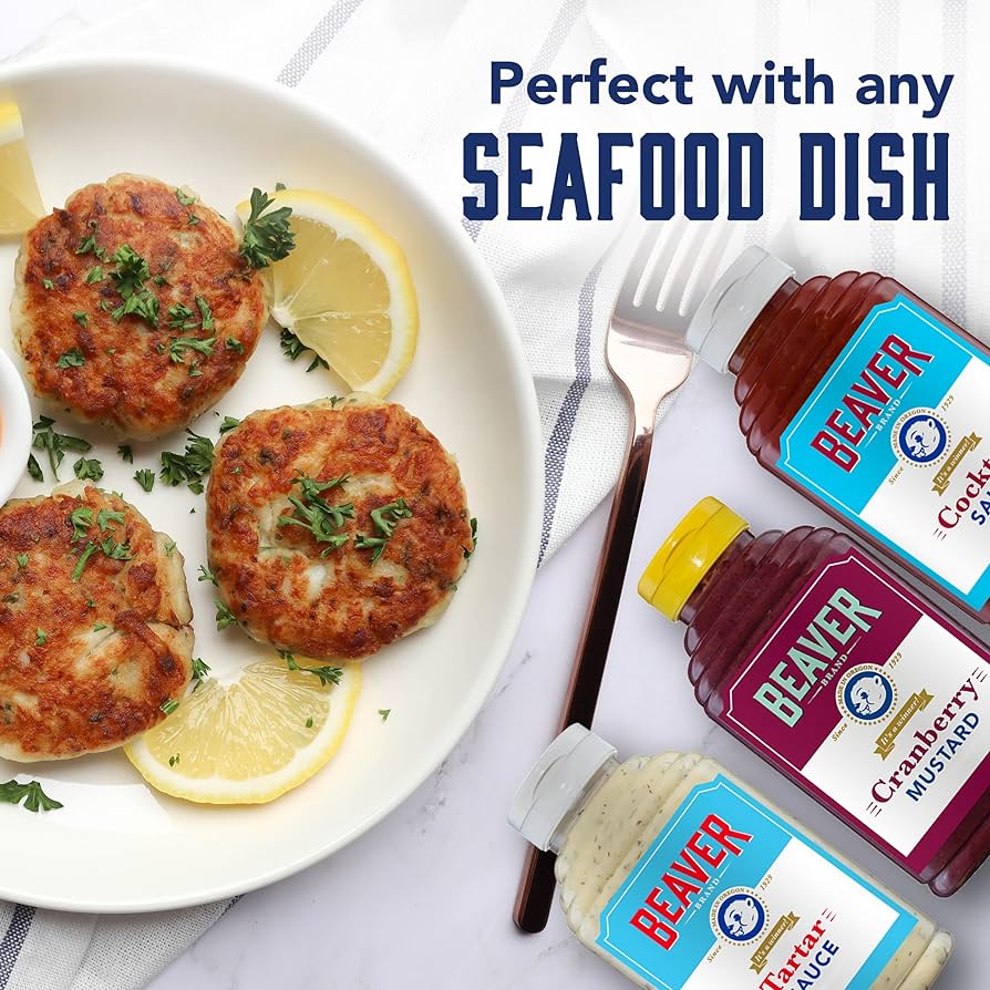 - Beaver Condiments Variety Pack includes Beaver Cocktail Sauce (13 oz), Beaver Tartar Sauce (11.5 oz) and Beaver Cranberry Mustard (13 oz)