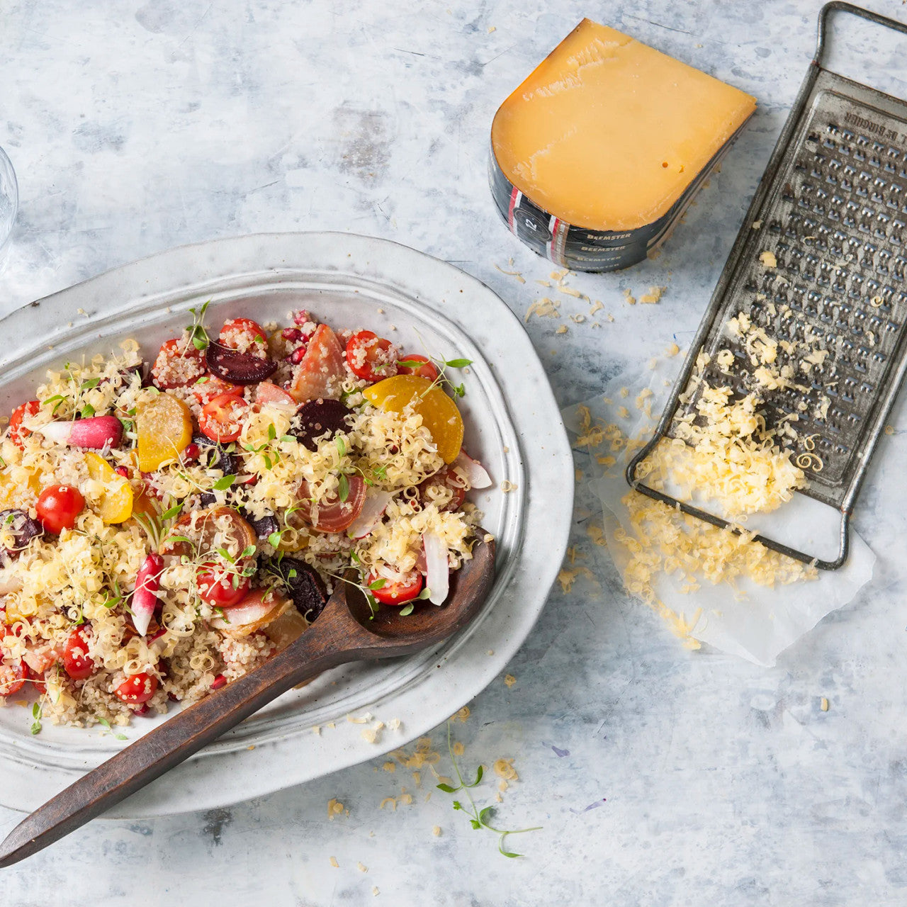 Beemster Cumin provides a great variation in the kitchen. This delicious cheese is very tasty on rustic bread. This is an excellent combination. It is evidently also ideally suited for a nice cheese platter. For example, you can cut Beemster Cumin into small pieces and enjoy it with a delicious glass of wine. But did you know that you can also use cumin cheese when you are cooking? It provides your dish with a slightly sweet and spicy taste. This way you can give every dish a special little twist. How about a typical Dutch spring stew with string beans, leeks and cumin cheese? Beemster Cumin will surely give your dish that little something extra!