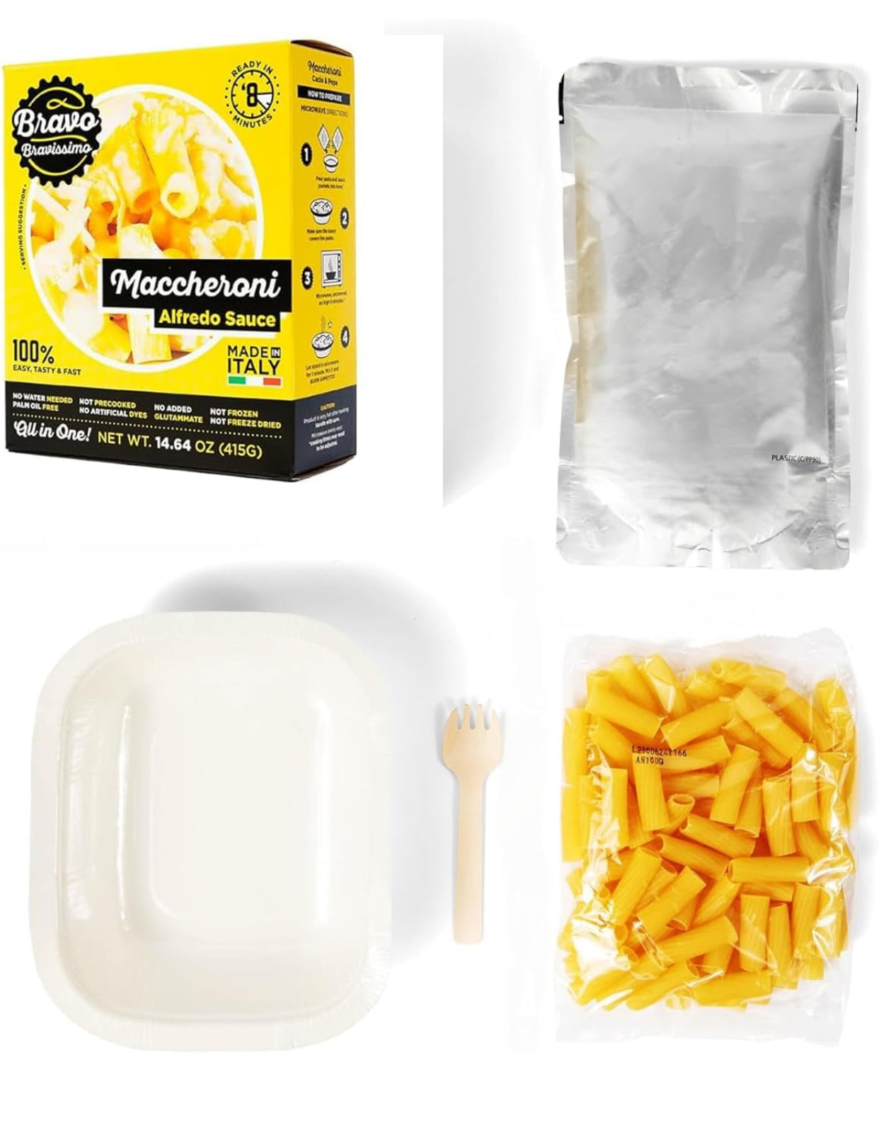 Bravo Bravissimo Maccheroni Italian Pasta Noodles, Comes in Alfredo Sauce Flavor, All-In-One Italian Pasta Meal, Sauce, Plate, Fork, Microwavable Meals, GMO Free - Pack of 6