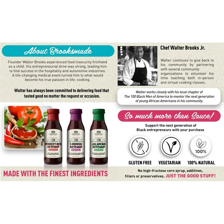 Brooksmade Gourmet Foods Soulful Sauces, Jalapeño Ketchup - Gluten Free, No High Fructose Corn Syrup All Natural Spicy Ketchup Made with Organic Tomatoes, 12 oz - Pack of 2