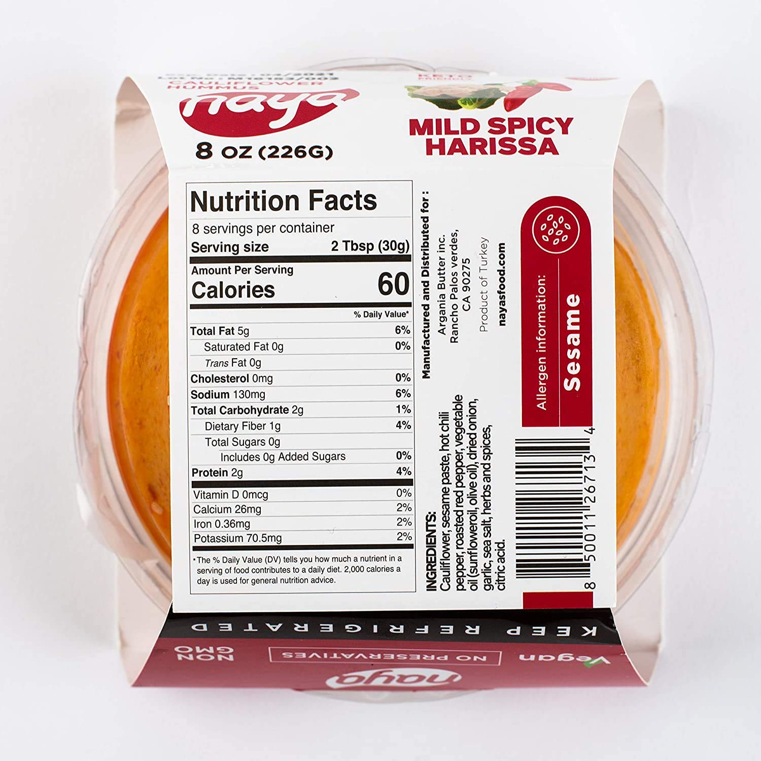 Cauliflower Dip Hummus Snack Pack - Mild Harissa Flavor with Sea Salt