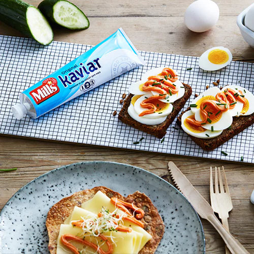 Norway is known for the pure arctic quality of its fish. Mills is known for its substantial selection of seafood-based products, including marinated herring and numerous types of sandwich spreads. The family owned business, established in 1885, and has been a quality supplier of products to the food retail and catering industries. Arctic Caviar is one of their flagship products: sugar-cured cod roe are lightly smoked, then pressed into easy-to-spread paste. With Mills' caviar you can bring a little luxury to the everyday meals.