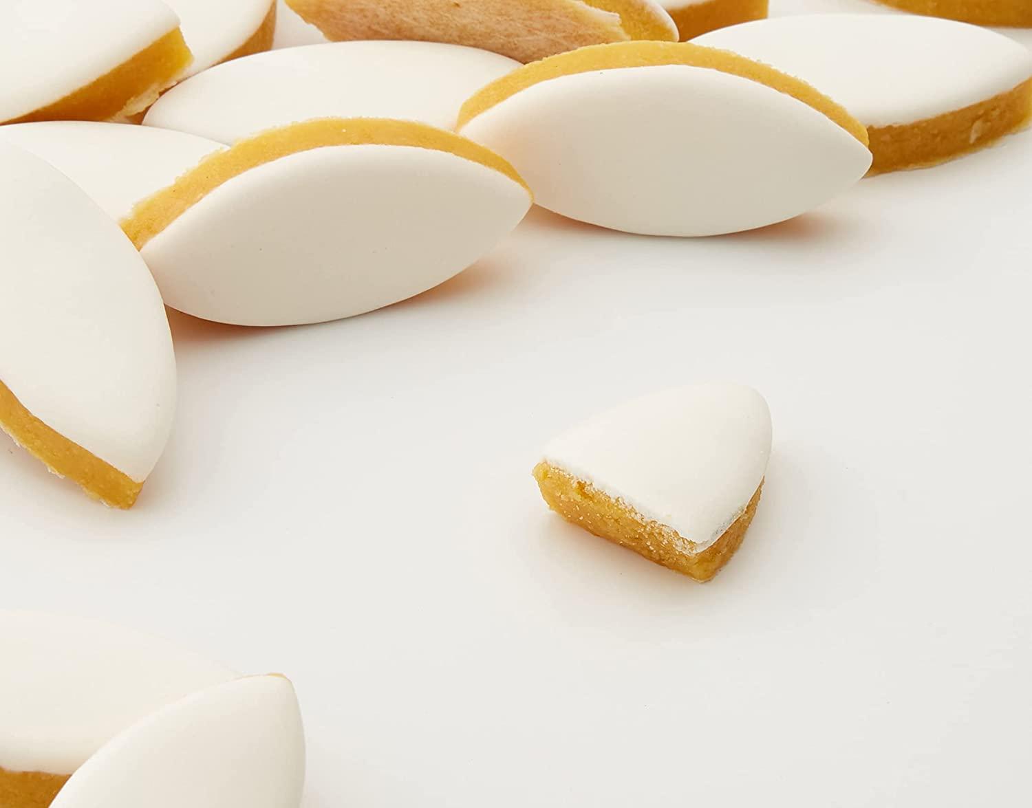 Calissons, a quintessential Provence treat, are a luxurious candy combining almond paste, melon and sugar, topped with a crunchy layer of royal icing. The texture is similar to marzipan but with a fruitier taste, usually melon-like (although maybe not for purists, there are also citrus variations). A Calisson is almond shaped, and usually associated with Aix-en-Provence (hence often called Calissons d'Aix). This candy likely originated in Italy and was introduced in France around the 15th or 16th century along with the introduction of almonds as a crop. Chabert & Guillot is based in Montelimar, in the South of France, the capital of French nougat-making. The company later added other confections and sweets including these delicious candies. Box is 225 grams or 7.9 oz.