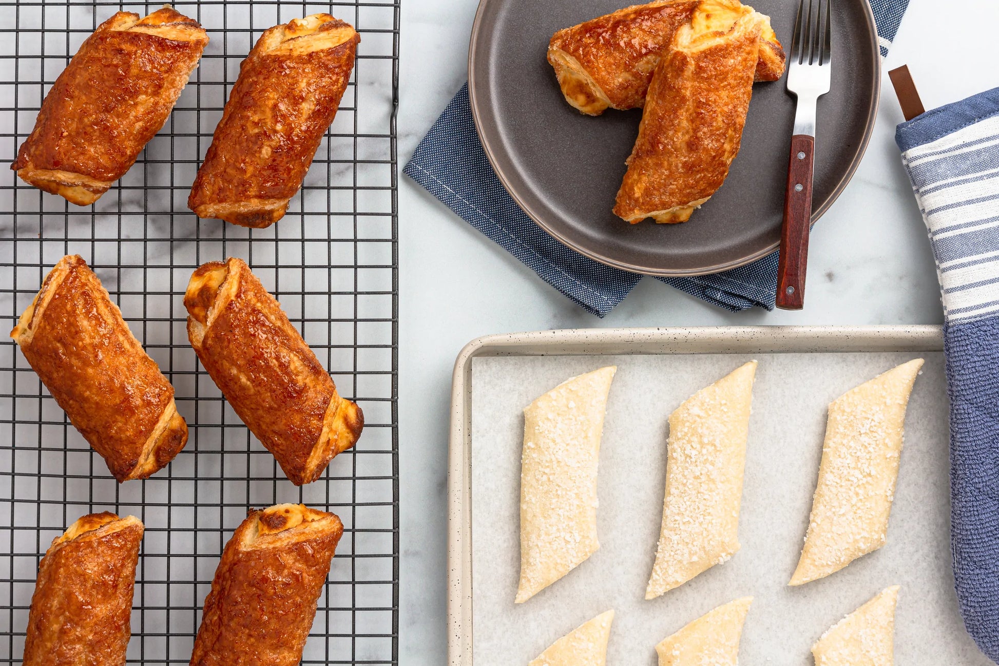 Preheat oven to 400˚ F. While oven is preheating, stack two baking sheets, one on top of the other. Place provided parchment paper on the top baking sheet, then place pastries on parchment paper and make sure pastries have at least ½" of space between each piece to bake evenly.