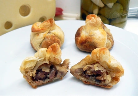 | Cooking Instructions Do not microwave. Use conventional oven. Preheat oven to 380 degrees and bake from frozen on baking sheet for 10-15 minutes until the dough is golden brown and the internal temperature reaches at least 165 degrees. Ingredients Chicken, ham, Swiss cheese, margarine, salt, garlic, seasoning (parsley, pepper, bread crumbs eggs, flour). Puff pastry: enriched flour (bleached wheat flour, barley malt, niacin, iron, thiamin, mononitrate, riboflavin, folic acid) partially hydrogenated vegetable shortening, water, calcium sulfate, L-cysteine hydrochloride, monocalcium phosphate, emulsiers, artificial color, TBHQ and BHT (added to protect flavor). CONTAINS: WHEAT. |