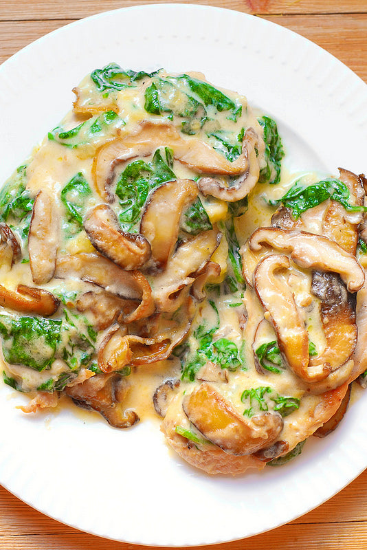 Chicken with Spinach and Mushrooms in Creamy Parmesan Sauce