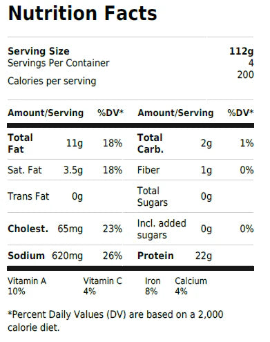 Grill on the BBQ or sautee in a pan. Keep refrigerated for 1 week once thawed.