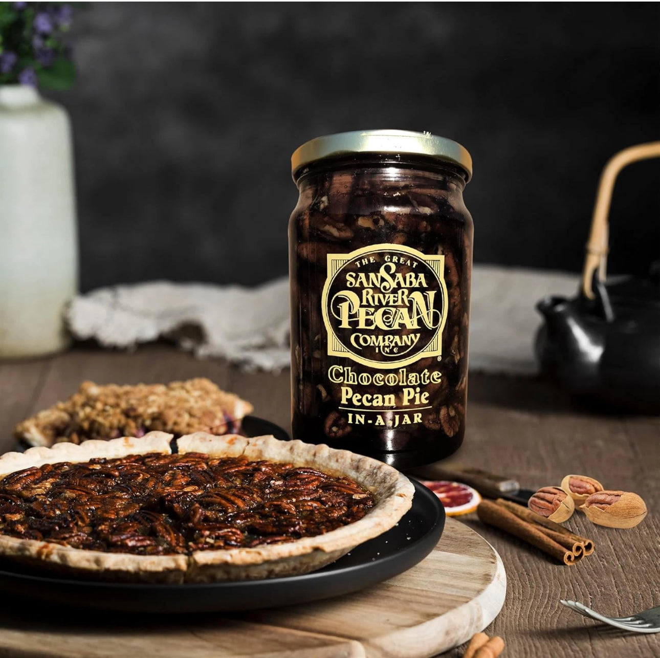 Chocolate Pecan Pie In A Jar - The Great San Saba River Pecan Company