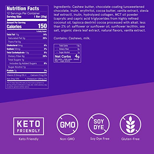 Collagen Double Chocolate Fudge Chocolate Dipped Protein Bars - includes 12