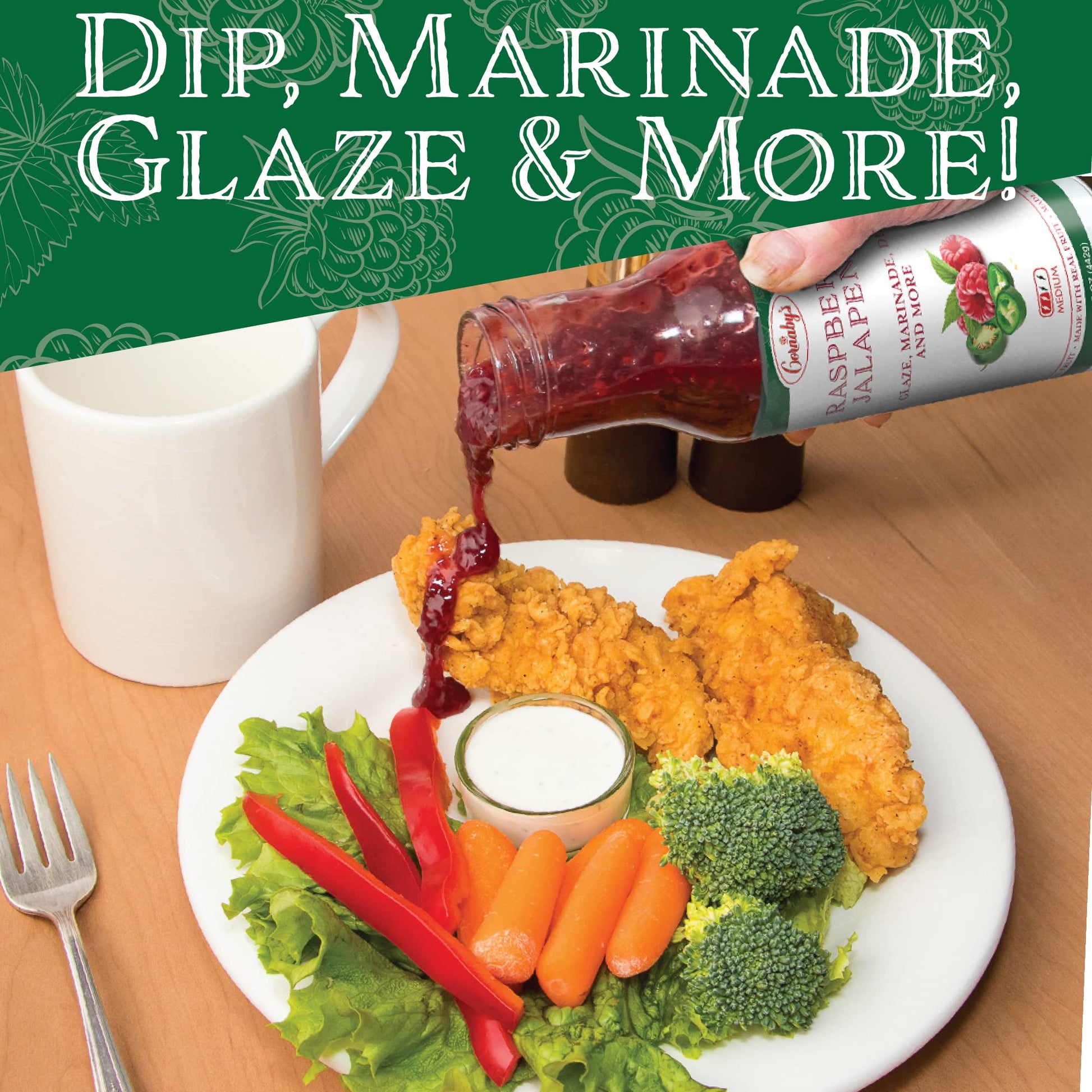 - ALL-NATURAL, VEGAN, GLUTEN-FREE: Cornaby’s Raspberry Jalapeno Savory Sauce uses all-natural ingredients that are minimally processed to retain the natural goodness; 100% vegan, gluten-free jalapeno sauce.