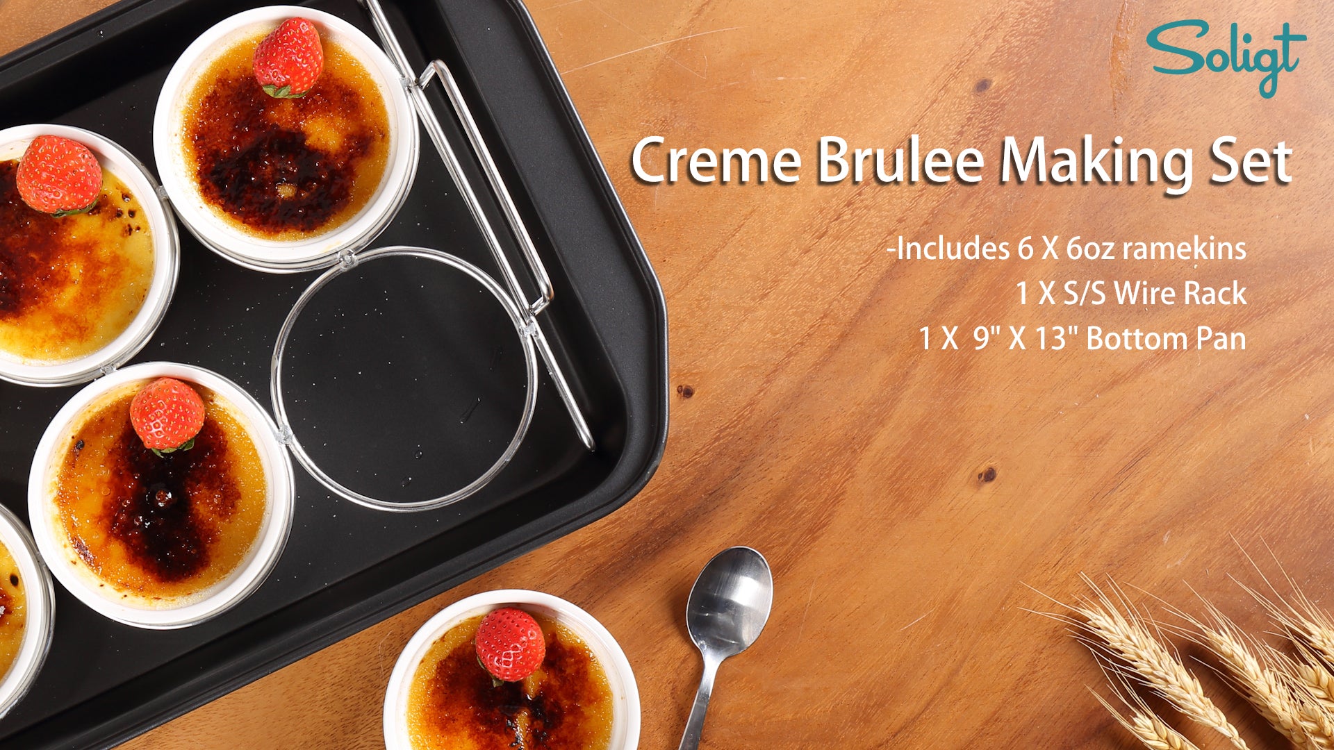 - All in one: Find everything you need to make and master the art of the base Creme Brulee in our kit: 6 individual 6oz white ramekins, a 304 stainless steel wire lifting rack, a "water bath" baking pan and a recipe. Use it to create individual souffles, flan, and other sweet and savory treats - makes a sensational gift for culinary enthusiasts too.