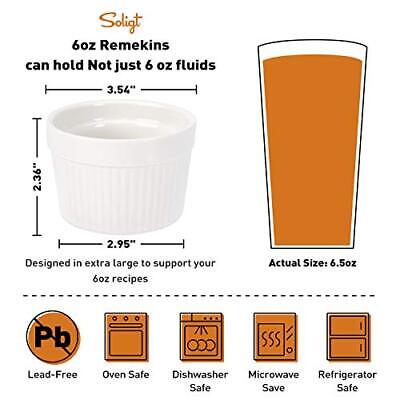 - Extra Large Capacity - The 9" x 13" bottom pan easily holds all 6 ramekins at once, allowing you to batch-prepare creme brulees and other ramekin recipes. Each 6oz ramekin holds a generous individual serving size, making it easy to treat guests, friends, and family members to your new culinary specialty during holidays and special meals.