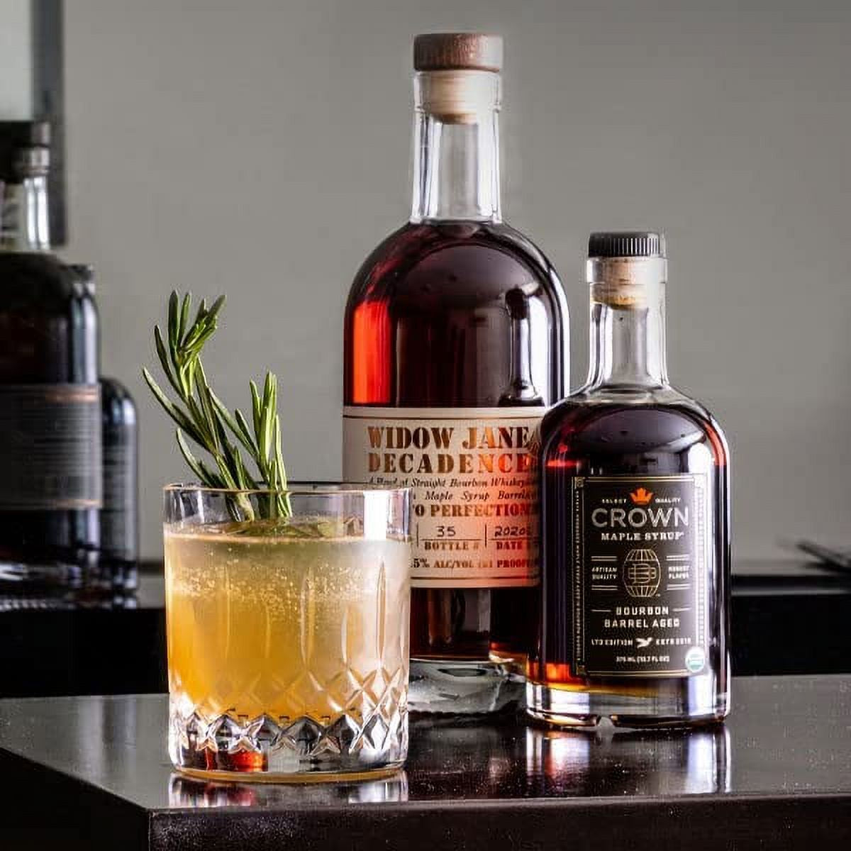 - AGED IN WIDOW JANE BOURBON BARRELS: We take organic estate-produced maple syrup and age it in super-premium oak barrels from 10-year bourbon from Widow Jane, based in Brooklyn NY; Syrup may contain trace amounts of alcohol