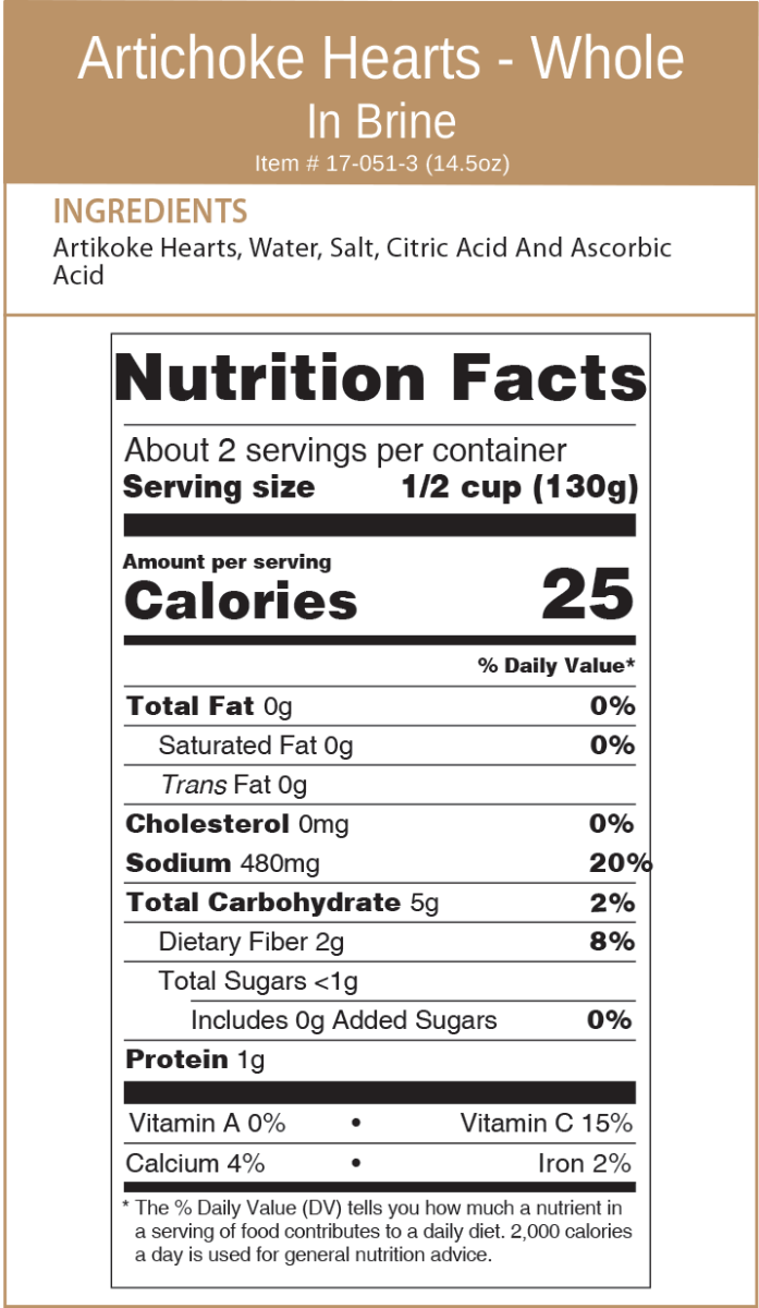 INGREDIENTS: Artichoke Hearts, Water, Salt, Citric and Ascorbic Acid