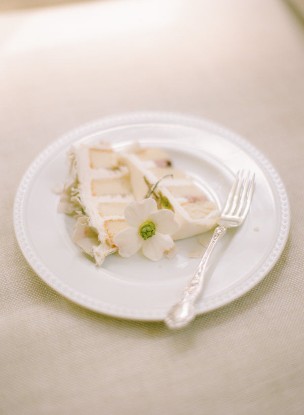 I recently got married…but kept things very small + very quiet in a bit of sweet irony with my profession. We actually tied the knot in our backyard of the house we just finished building and moved into…just the two of us but celebrated with cake, champagne and then a fun, fancy dinner out. We planted a dogwood tree (it’s the Virginia state tree + flower) together when we moved into the house which is the inspiration behind the cake design.
