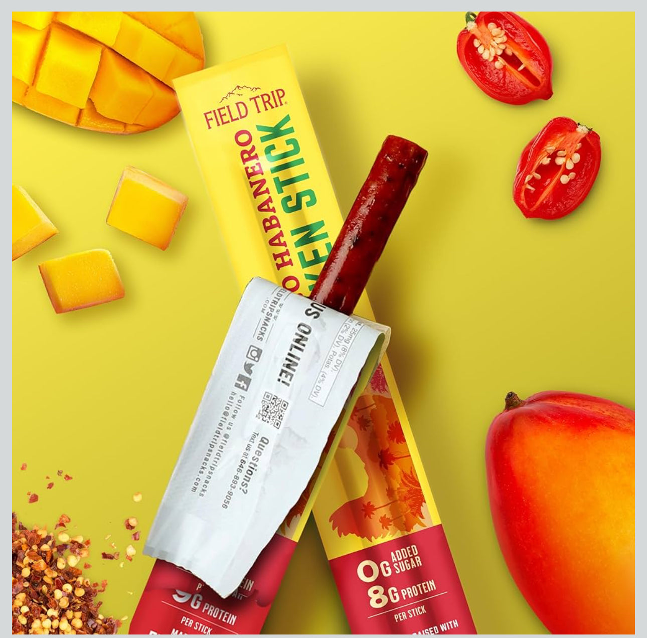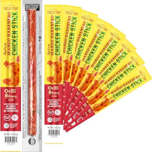 Field Trip Free Range Spicy Mango Habanero Chicken Jerky Snack Sticks, Zero Sugar, Keto, Paleo, Gluten Free, Allergy Friendly Snack, High Protein, 50 Calorie Snack - 1 oz, Pack of 24
