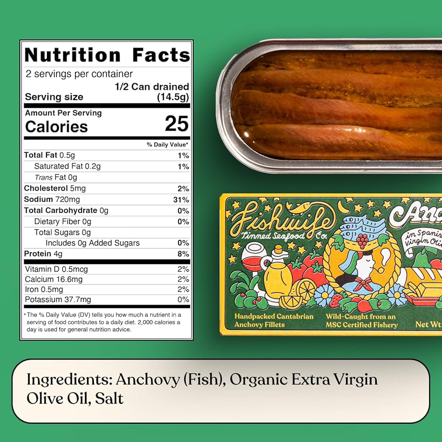 Fishwife Cantabrian Anchovies, Wild-Caught & Hand-Packed with Spanish Extra Virgin Olive Oil | MSC-Certified Sustainable Seafood, High Protein, Gluten Free, Paleo Friendly, Omega-3s - Pack of 3