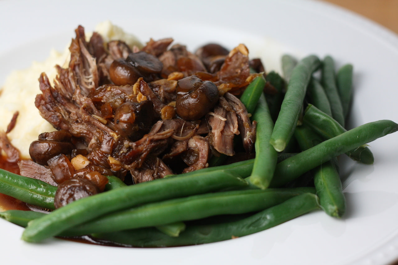 Pot Roast with Mushroom Gravy, Brown Rice & Green Beans