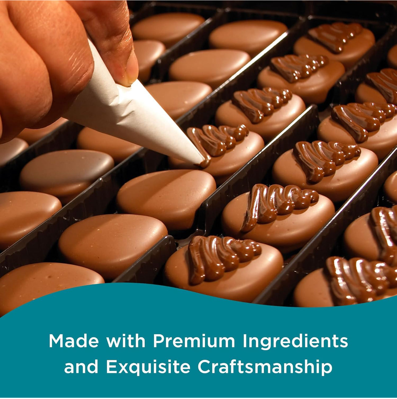 - ELEGANT GIFT BOX – A beautifully designed chocolate box gift, wrapped with a sophisticated gold ribbon, makes gifting this collection the ultimate gesture of elegance. Whether as part of a chocolate gift basket or a stand-alone showpiece, its presentation is as impressive as the chocolate gourmet experience within.