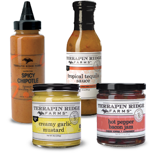 You have your grilling bases covered with this assortment: Creamy Garlic Mustard is a Burger and Brat Lover's dream. Hot Pepper Bacon Jam is perfect for Steaks, Burgers and Chicken. Tropical Tequila Sauce is delicious as a glaze for Pork, Poultry, Fish and Shrimp. Spicy Chipotle is the perfect garnish for any plate, especially delicious in baked beans and potato salad. Collection includes: