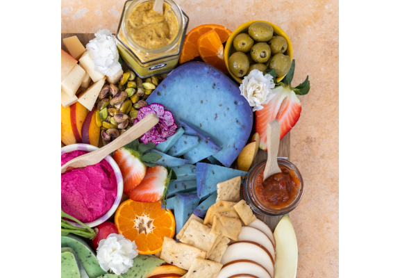 This young, creamy goat cheese with lavender added to it has a distinctive colour and flavour. At first, the cheese tastes mild and then the lavender becomes evident: fruity and slightly sharp. The flavour of lavender is closest to that of rosemary. This is a truly unique, aromatic cheese with a special colour.