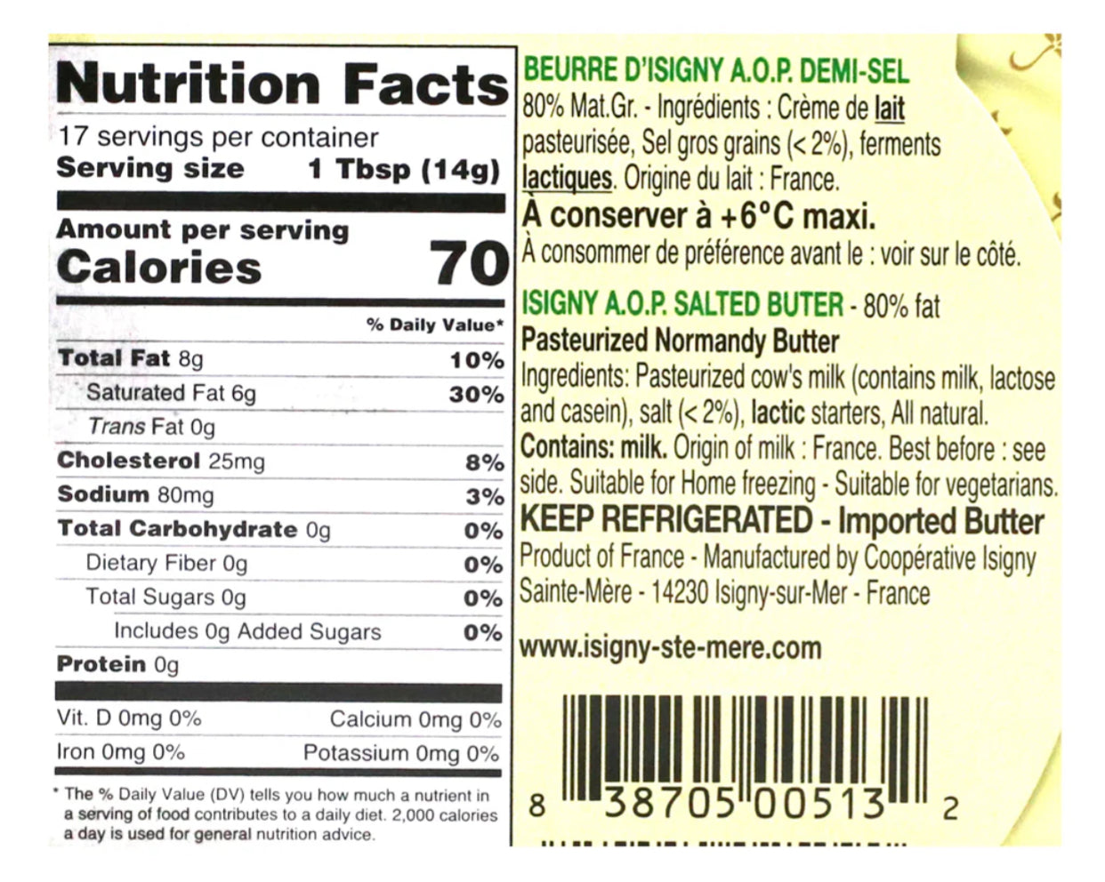 Isigny Ste Mere's Churned Butter made from best milk from Isigny region in Normandy, known for richness in cream, protein and vitamins.
