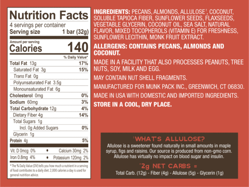 Our Keto Granola Bars combine a wholesome mix of nuts and seeds so you can enjoy the goodness of granola, without the grains, but with all of the benefits! At only 140 calories, this is the perfect low calorie snack to fuel your healthy lifestyle.