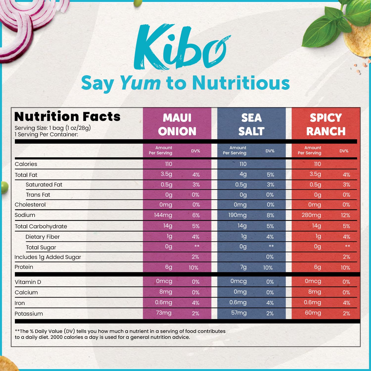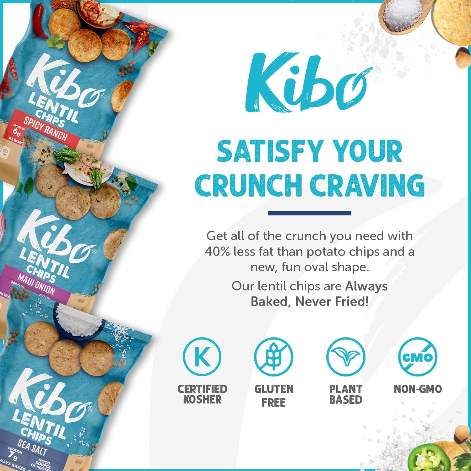 Kibo Lentil Chips Variety Pack - Maui Onion, Sea Salt, and Spicy Ranch - 18 Pack