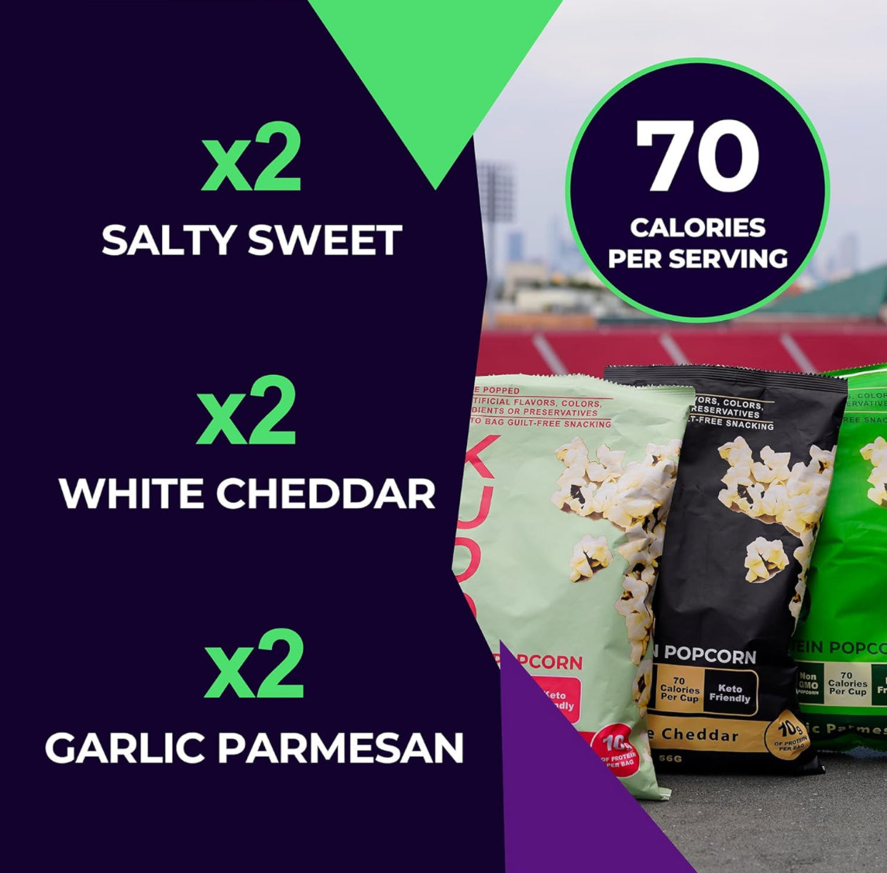 KUDO Protein Popcorn, Variety 6-Pack - Non-GMO -2 oz bags