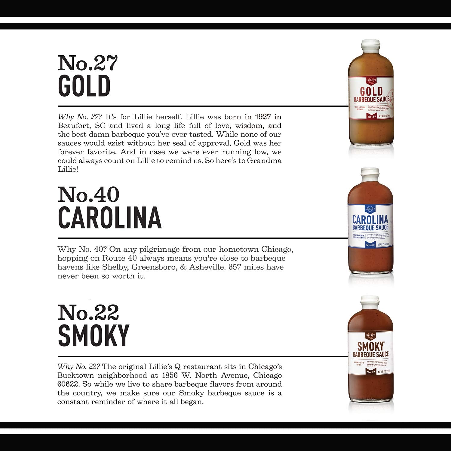 Lillie’s Q Barbeque Sauce Variety Pack - Carolina, Gold & Smoky BBQ Sauce - 3 Pack