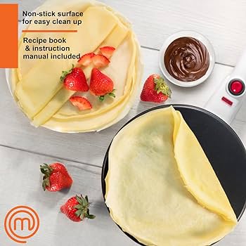 - Free Recipe Book, Wooden Spatula & Crepe Spreader - Never used a crepe maker before? No problem! We'll provide you with 100 crepe recipes and the tools you need to start using your electric crepe maker right away. Your crepe machine is designed for the pros or a novice. The crepe griddle is safe and family friendly. Each crepe pan nonstick 12 inch is designed for any kitchen.