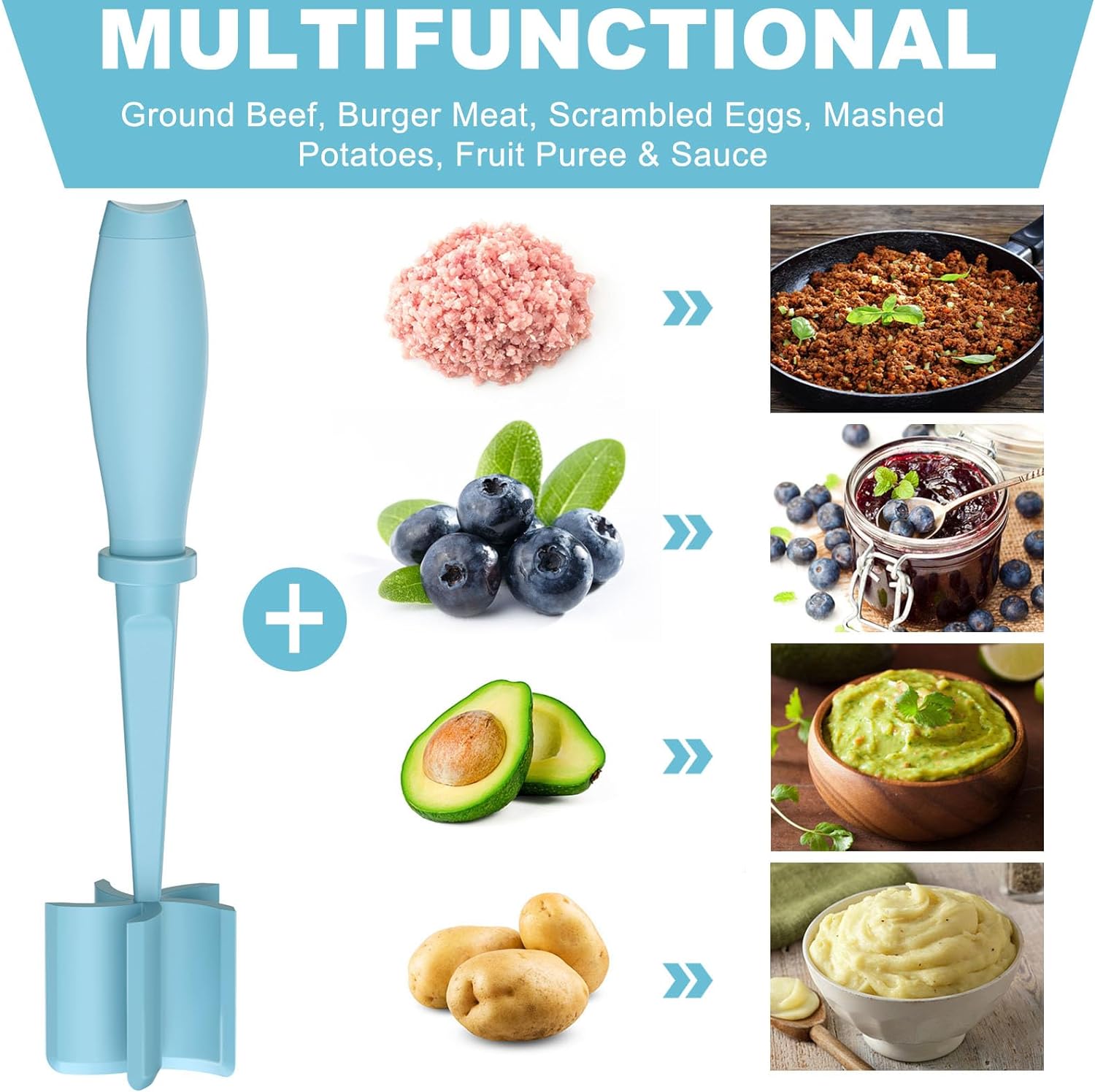 Heat Resistant Meat Masher for Ground Beef, Hamburger Meat, 5 Curve Blade Hamburger Chopper, Ground Meat Smasher Ground Beef Chopper, Mix and Chop Kitchen Tool & Meat Browning Utensil