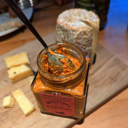 Orléans Mustard (water, mustard seeds from the Loire Valley, vinegar, Guérande salt, acidifier: citric acid, turmeric, natural flavours, antioxidant: ascorbic acid, preservative: potassium bisulphite), Espelette pepper PDO (4%). May contain sulphites.