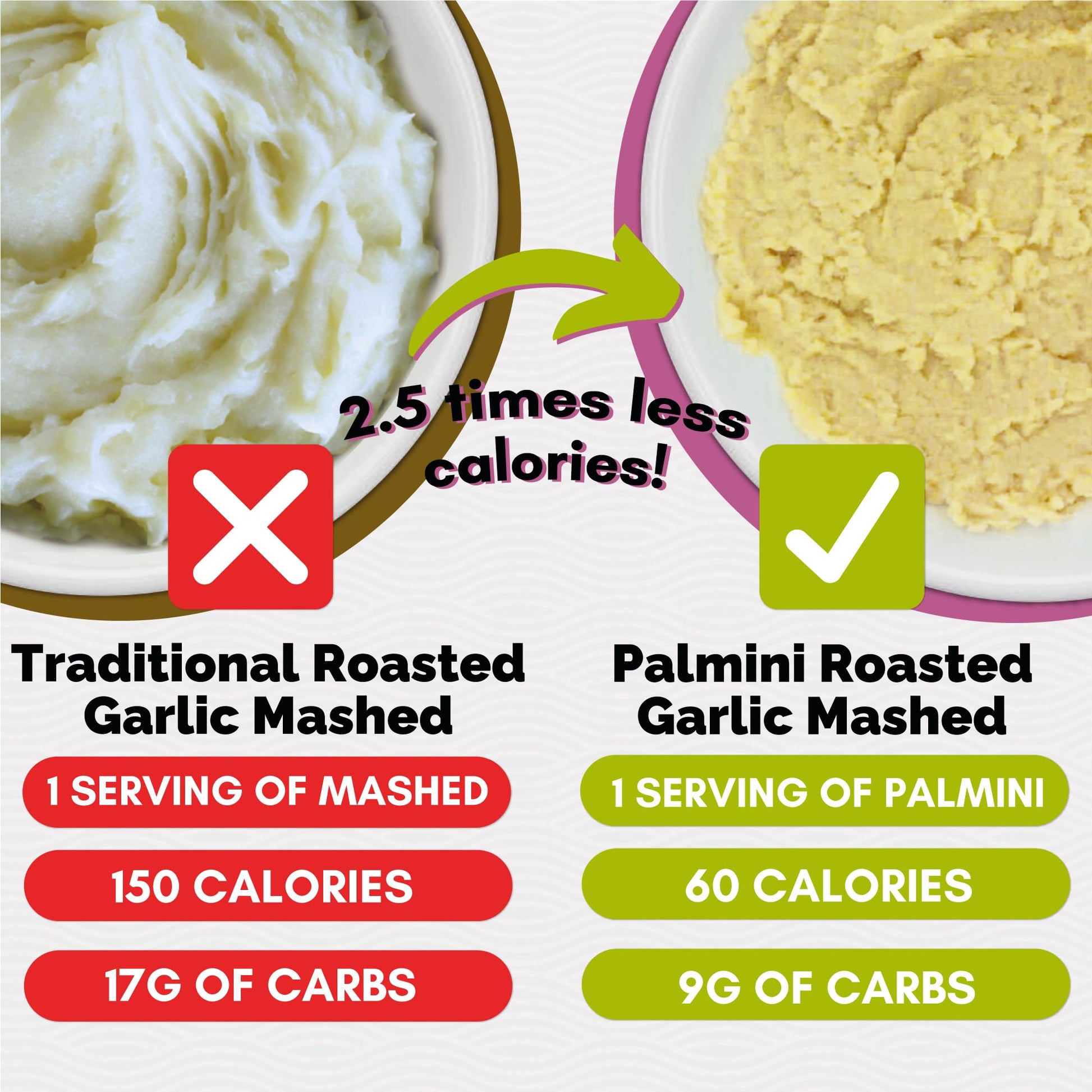 Palmini Roasted Garlic Mashed Low Carb, Low Calorie Hearts of Palm Mashed - 8 oz Pouch - Pack of 6