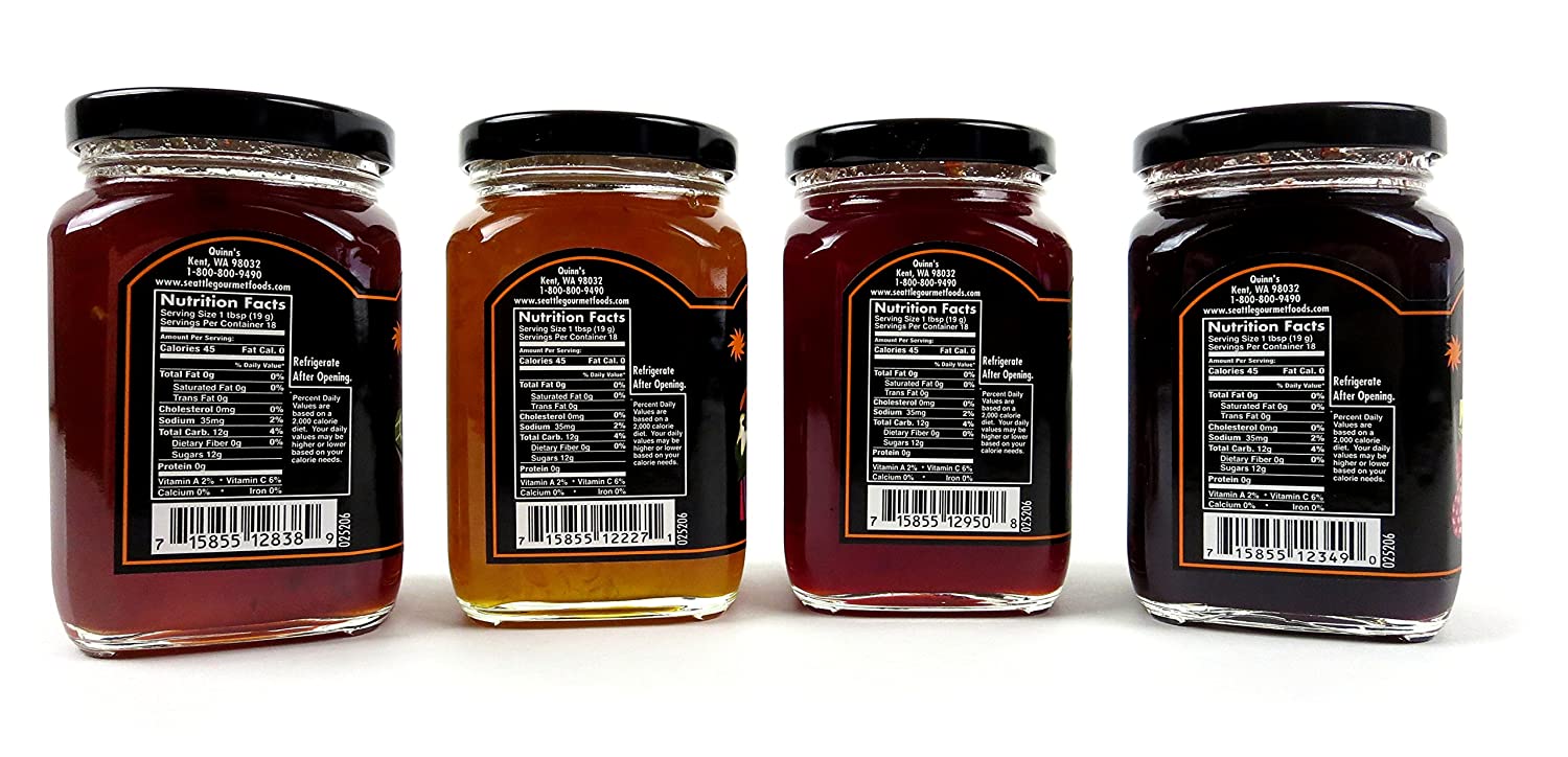 Quinn's Pepper Jelly 4 Flavor Variety - 12 oz Jar each of Jalapeño, Peach Habanero, Raspberry, Marionberry