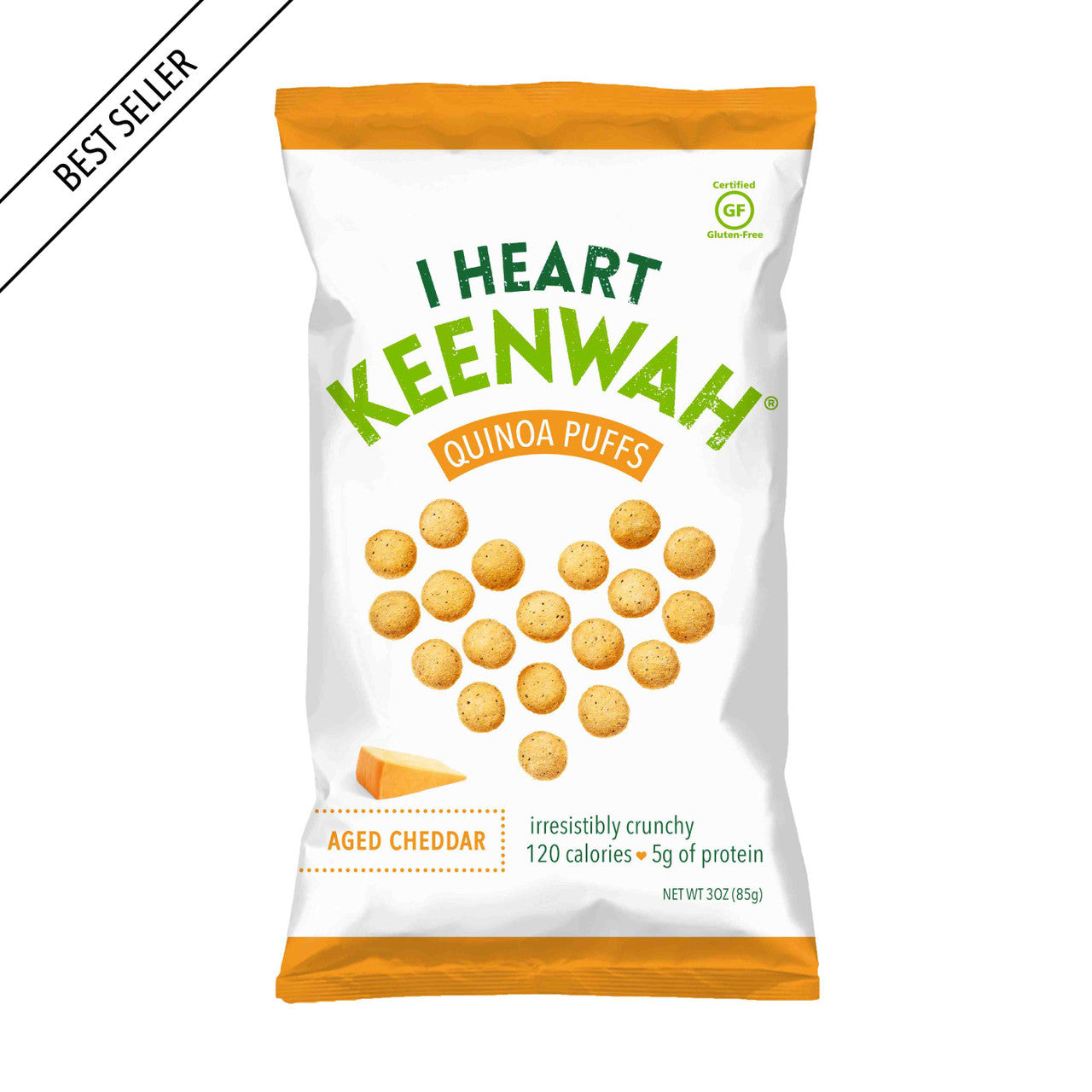 Your childhood cheese puffs are all grown up - with savory aged cheddar and a hint of peppercorn! Made with quinoa flour instead of corn, these crunchy, gluten-free snacks will take you back. Eat them straight out of the bag, pack them with your kids' lunches, or throw them on soups and salads. With 5g of protein in every serving, you can #heartyourself by the handful.