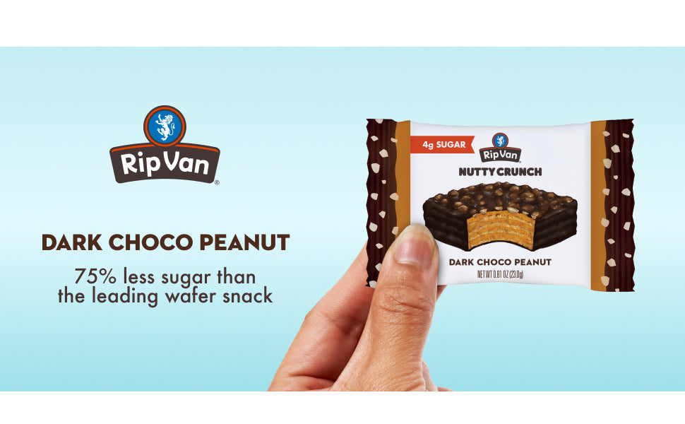 Rip Van Dark Chocolate Peanut Butter Wafer Cookies - Keto, Non-GMO, Healthy Snacks, Low Carb & Low Sugar (2g), Low Calorie, Vegan - includes 16