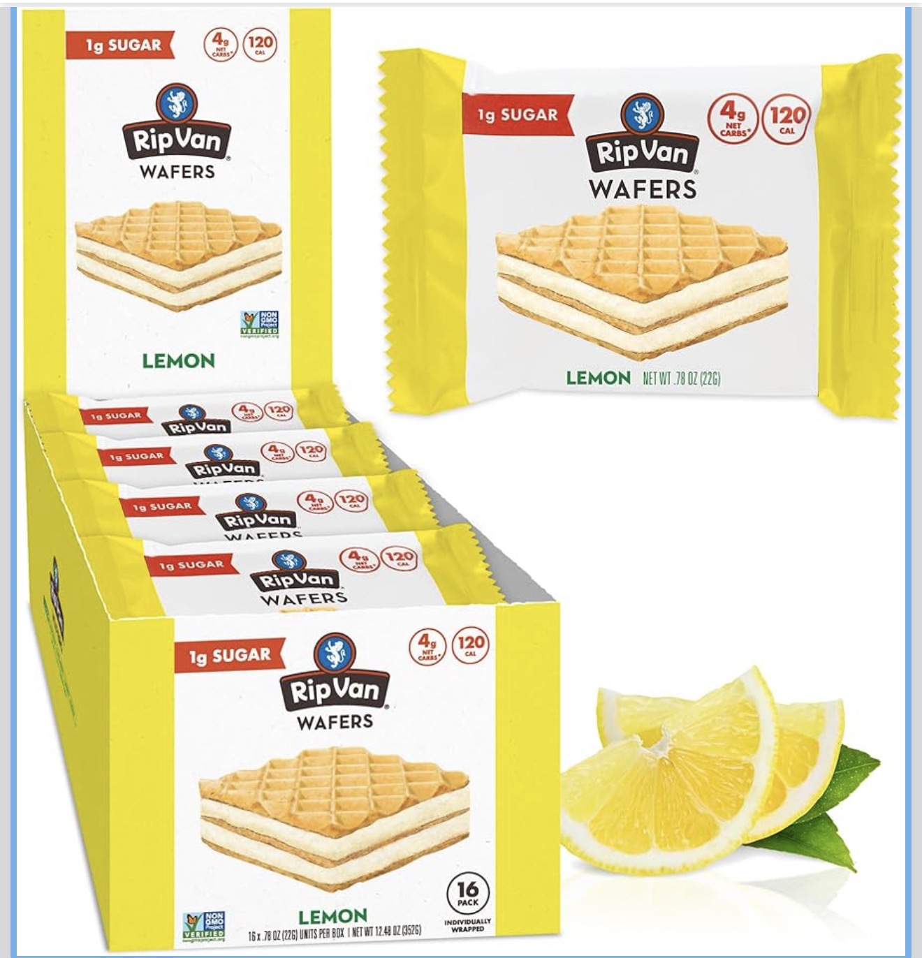 Rip Van Lemon Wafer Cookies - Keto, Non-GMO, Healthy Snacks, Low Carb & Low Sugar (2g), Low Calorie, Vegan - includes 16