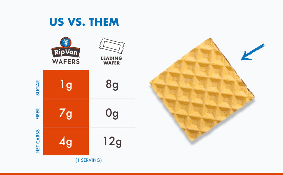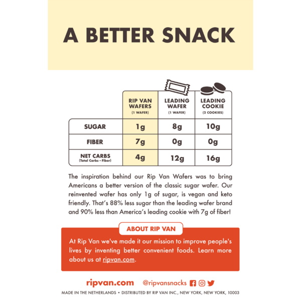 Rip Van Vanilla Wafer Cookies - Keto, Non-GMO, Healthy Snacks, Low Carb & Low Sugar (2g), Low Calorie, Vegan - includes 16