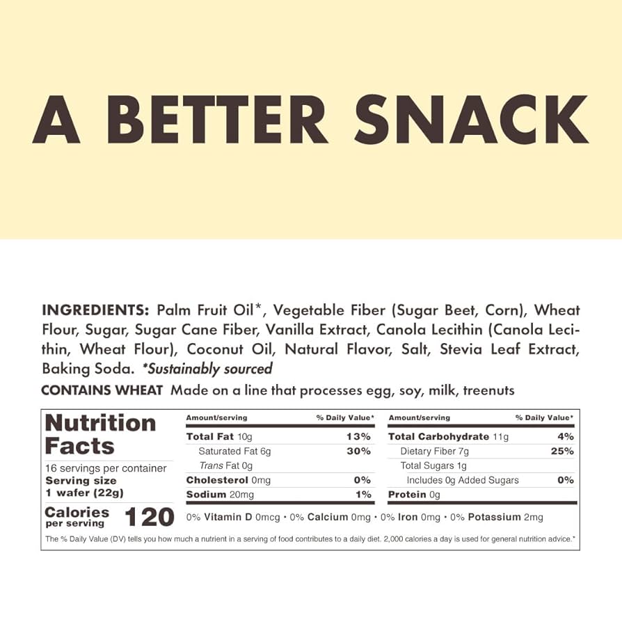 - Healthy Snack with Only 2g of Sugar: Contains 2g of Sugar, 4g of net carbs, 0g Trans Fat, 130 calories, and 4g of Fiber in each 33g Wafer