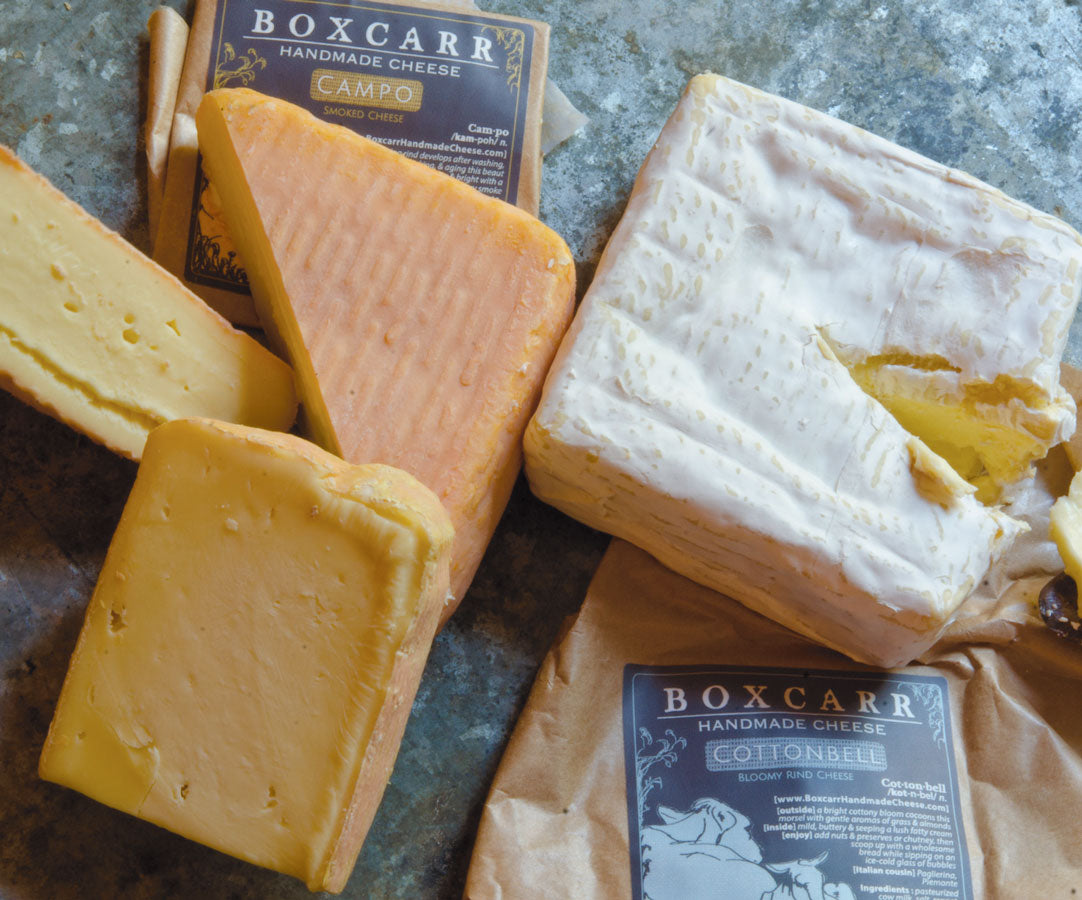 A delectable mix of Old and New World with cow and goat milk. Rosie’s Robiola is a zingy washed rind cheese, featuring a chalky, lactic-set center, a gooey interior rind, and a chewy exterior. Cedar Grove, NC’s Boxcarr Cheese sources from both Holstein and Jersey cow milk, along with Alpine, Nubian, and Sannen goat milks.
