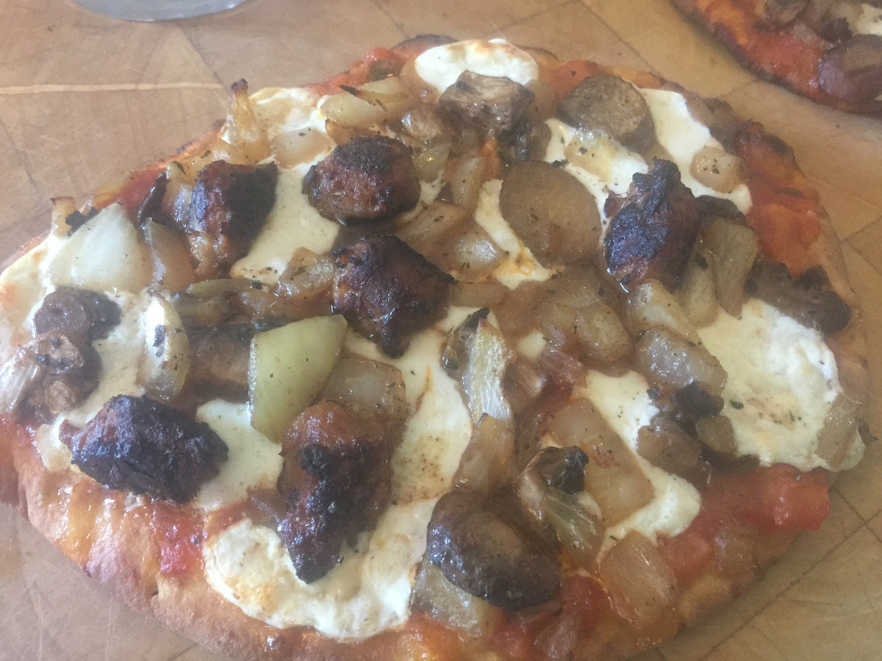 Sausage, Onion, Mushroom & Mozzarella Naan Pizza
