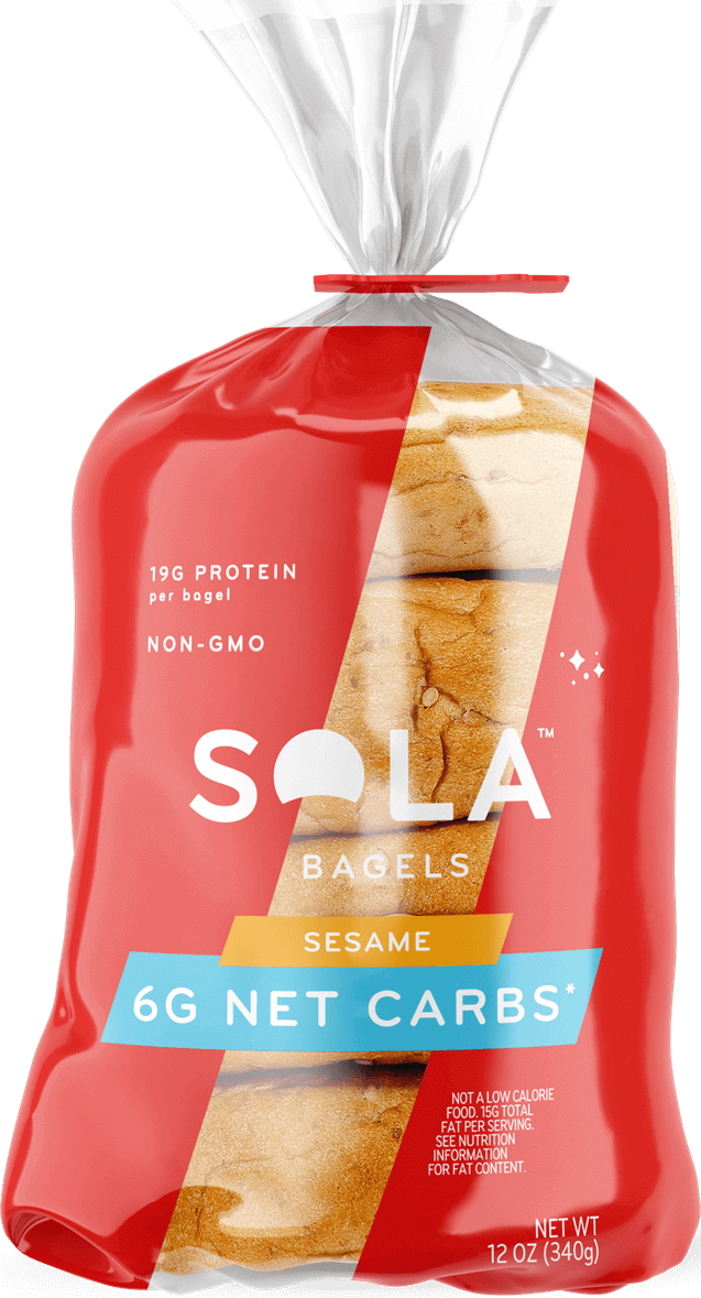 You asked, we listened. SOLA bagels have a new look, with the same great taste. SOLA Everything and Sesame bagels, 4 CT. now have toppings incorporated into the bagels for less mess. SOLA has crafted a keto-friendly, low-carb bagel which keeps the fluffy, and chewy texture you love with none of the aftertaste. Helping your mornings become a little brighter with a low-carb bagel and your favorite topping.